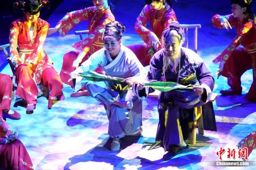 中新網北京6月4日電(袁秀月)“五月五,過端午,雄黃酒,撒庭戶。” 6月3日,由湖北秭歸縣打造的民俗情景歌舞劇《大端午》亮相北京梅蘭芳大劇院。記者獲悉,該劇為今年“湖北省優秀劇目北京行”的主要劇目之一。