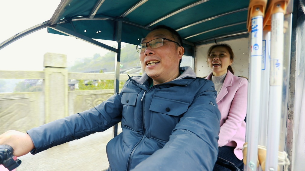 此前,外出打工的周開伍,最放心不下的就是丈夫的精神狀態。“他在床上躺了兩年,不愿意出門。有一天他跟我說,夢見自己買了一輛代步車,那感覺好自由啊像飛機一樣。”后來,周開伍到江津縣城,花5000多塊給他買了一輛代步三輪車。
