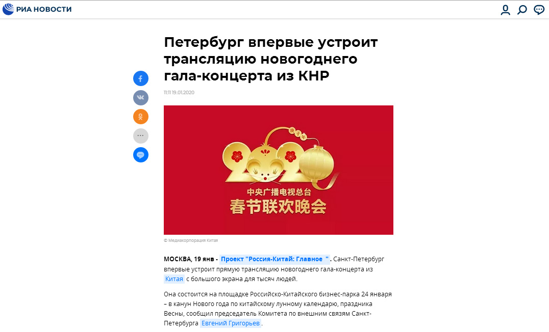 俄新網(wǎng)19日報道稱,圣彼得堡市“千人看中央廣播電視總臺春晚”活動將于中國農(nóng)歷除夕(1月24日)在俄中商務(wù)園舉行。