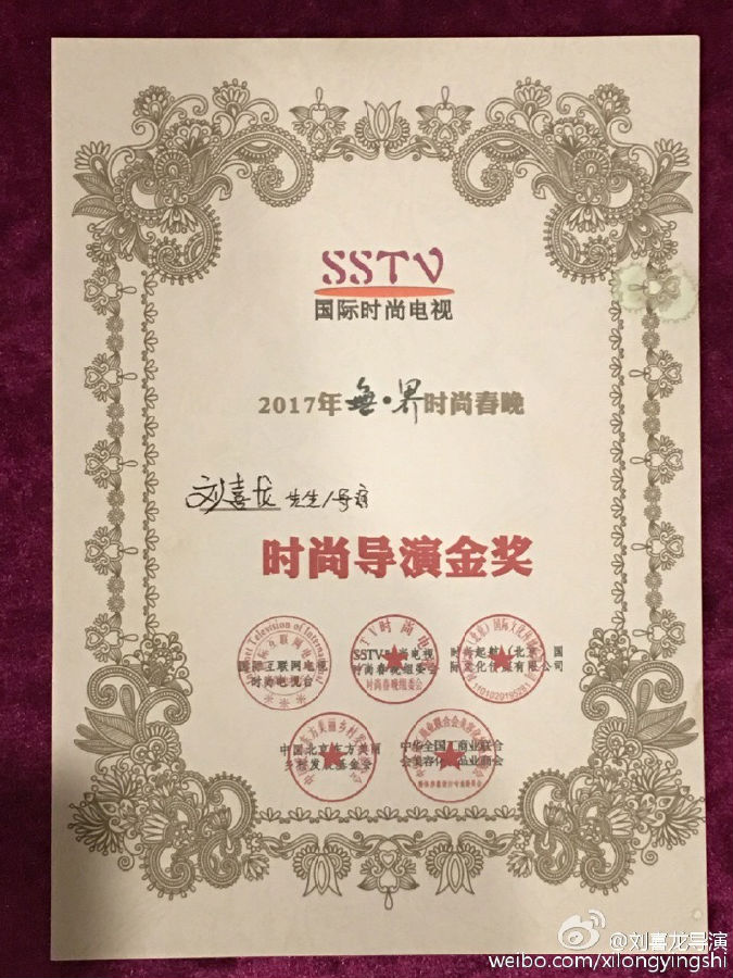 近日,劉喜龍導演榮獲SSTV時尚電視臺時尚導演金獎,據悉,時尚電視臺是以電視、電腦、手機為終端,利用三網融合技術打造出來的網絡電視公共服務平臺。旨在定制多樣性、全方位的網絡試聽互動服務,讓公眾擁有多元化的信息渠道將世界各國各地區(qū)互聯互通,劉喜龍導演已經連續(xù)兩屆參與指導時尚電視臺時尚春晚。