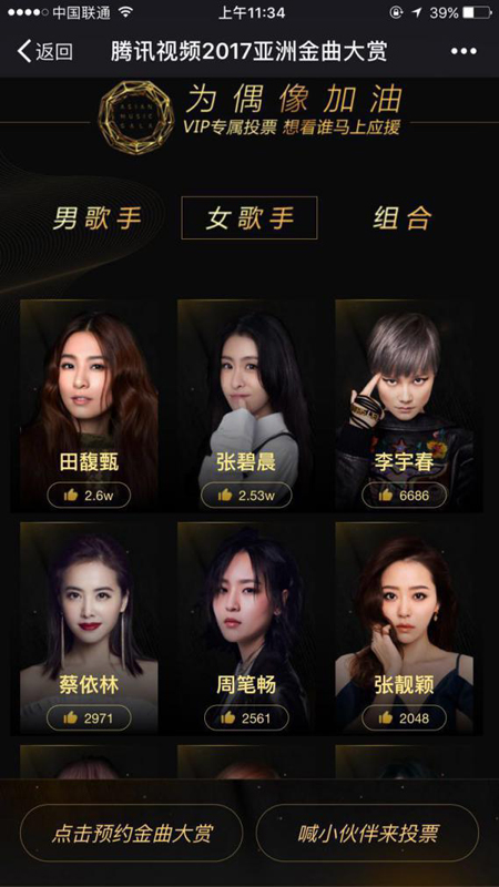 騰訊視頻LiveMusic作為在線演唱會(huì)第一平臺(tái),與MTV音樂電視臺(tái)繼續(xù)強(qiáng)強(qiáng)聯(lián)合,攜手舉辦2017亞洲金曲大賞,互聯(lián)網(wǎng)基因和傳統(tǒng)音樂因素結(jié)合,開啟又一場無與倫比的互聯(lián)網(wǎng)音樂盛典。目前投票頁面已經(jīng)進(jìn)入最后開放階段,考驗(yàn)最燃粉絲的時(shí)刻到了,愛TA你就動(dòng)動(dòng)手指投票送TA去現(xiàn)場!