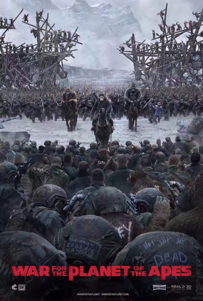 第三部中,人類因感染“猩猩病毒”而數(shù)以億計的死亡,瀕臨滅絕。以上校為首幸存的人類武裝軍團(tuán)為了生存和爭奪掌控世界的權(quán)力,要不計一切代價終結(jié)猩猩的崛起,一場人猿之間的終極決戰(zhàn)就此展開。