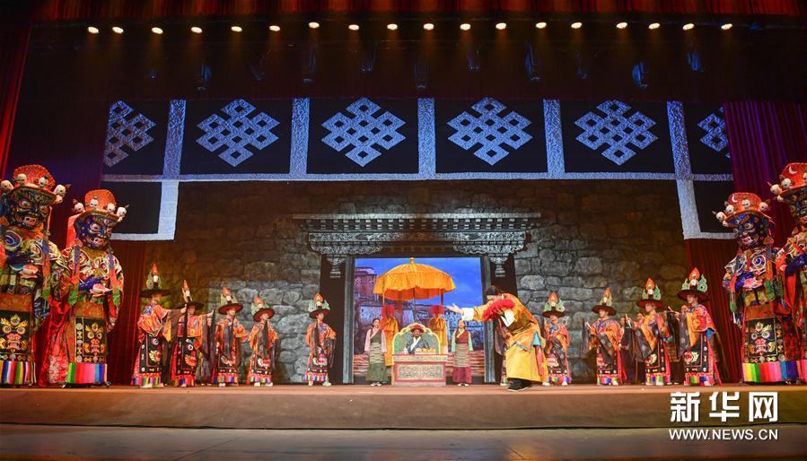 10月25日,演員在表演大型舞臺劇《朗薩雯波》。當日,大型舞臺劇《朗薩雯波》在西藏自治區藏劇團與觀眾見面。這是傳統八大藏戲之一的《朗薩雯波》在完成舞臺化、數字化之后首次亮相。除拉薩外,還將在日喀則、山南等地進行展演。2013年起,為了突破傳統八大藏戲在發展中遇到的瓶頸,西藏自治區藏劇團啟動了八大傳統藏戲舞臺化項目。幾年來從舞蹈、服裝、道具等方面進行重新打造,先后完成了《白瑪文巴》、《諾桑法王》、《卓娃桑姆》三部劇的舞臺化工作。新華社記者 晉美多吉 攝