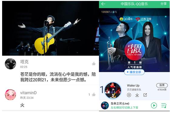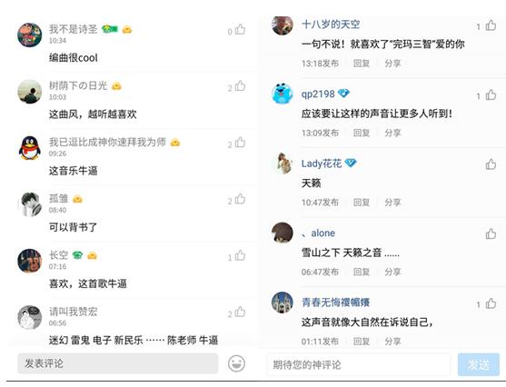 在首期節目中,樂隊推薦人陳偉倫帶著自己的樂隊、以一首《如夢令》先行東道之禮,中西樂器加上古風與電音的碰撞,為李清照的這首經典詞牌注入了全新的生命力。而其強大的音樂創造力也讓不少網友表示欽佩,在QQ音樂更有“技術帝”犀利指出這首歌所融入的“迷幻、雷鬼、電子、新民樂”四種編曲元素,表示陳老師太牛了。隨后,由化身“中國樂隊音樂調頻”DJ的譚維維親自找尋樂手的尼瑪樂隊用藏語驚艷開唱。在傳承西藏傳統音樂的基礎上賦予了音樂現代化、國際化的色彩,尼瑪樂隊的《生命之河》無論是在歌藝還是在表演形式上都完美詮釋了“民族的就是世界的”。對于這樣一首洗滌心靈之作,酷狗音樂的網友也盛贊“雪山之下,天籟之音”,“這聲音就像大自然在訴說自己”。