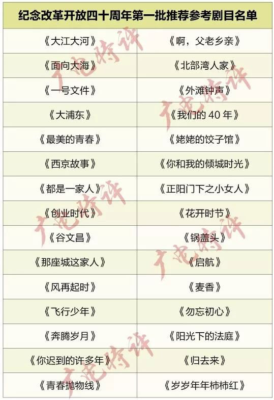 央視網消息:日前,國家廣播電視總局公布了紀念改革開放40周年第一批電視劇推薦參考劇目,這些劇目統一表現了人們在改革開放大潮下創造美好生活的故事,揭示了中國堅持走改革開放之路的歷史趨勢,首批入圍的30部作品注定將成為2018年熒屏主旋律。