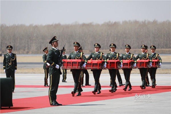 今日,關于那段戰爭的記憶并沒有被遺忘。2019年4月3日,10名在韓中國人民志愿軍烈士遺骸回歸故土。從2014年至今,六批共599位在韓烈士遺骸回到祖國,山河已無恙,共和國以最高禮遇迎接英雄回家。