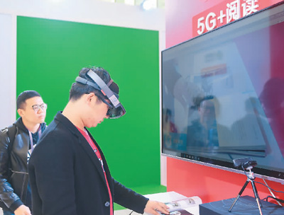 觀眾在數(shù)字閱讀發(fā)展與技術(shù)博覽會上體驗5G+閱讀。 新華社記者 黃宗治攝