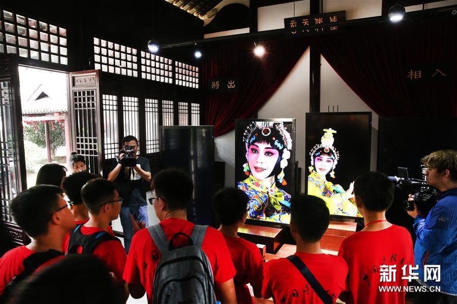 7月8日,夏令營(yíng)營(yíng)員在江蘇南通伶工學(xué)社參觀。 當(dāng)日,參加海外華裔青少年“中國(guó)尋根之旅”江蘇夏令營(yíng)南通營(yíng)的成員走進(jìn)南通伶工學(xué)社參觀體驗(yàn),感受京劇的魅力。 新華社發(fā)(許叢軍 攝)