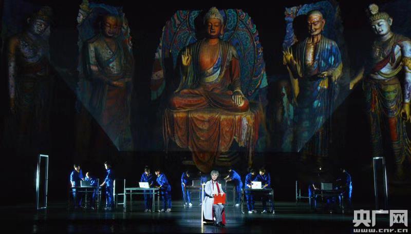 樊錦詩的飾演者茅善玉表示,相比去年在北大的演出版本,今年《敦煌兒女》在“數(shù)字敦煌”部分的舞臺(tái)表現(xiàn)上做了新的探索。大漠、飛天、臥佛、禪定佛陀等敦煌元素通過多媒體投影呈現(xiàn)于舞臺(tái),讓觀眾更直觀的看到了壁畫是如何通過精密的數(shù)據(jù)完整保存下來,也讓大家更了解了樊錦詩在“數(shù)字敦煌”上作出的巨大貢獻(xiàn)。