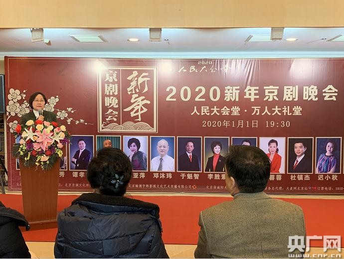圖為北京演藝集團黨委副書記、董事、總經理王玨介紹2020新年京劇晚會策劃演出情況。(央廣網發 北京演藝集團供圖)
