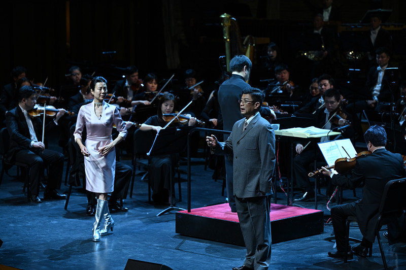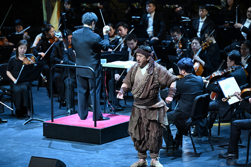 當晚的演出,在北京交響樂團藝術(shù)總監(jiān)李飚執(zhí)棒下,北京交響樂團、北京京劇院、北京音協(xié)合唱團三方聚力,以龐大的陣容將《京城大運河》演繹得氣勢如虹。每個章節(jié)的每首曲目所表達的內(nèi)容和意境層層遞進、環(huán)環(huán)相扣。如第一樂章《一支塔影見通州》,描寫了通州漕運碼頭、驗糧樓、張家灣、通州號子等場景,而最后的聲聲號子,則引出下一樂章《天上的星星郭守敬》,講述大運河的修建。