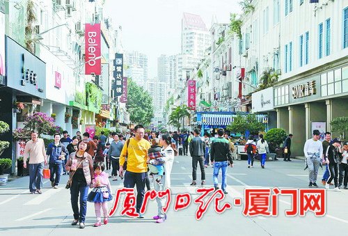 昨日,廈門陽光燦爛,氣候溫和,地震發生時,中山路上行人如常。(記者姚凡攝)
