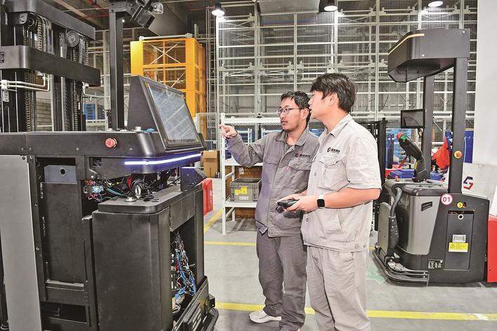 11月24日,位于三明市的聯核智能科技(福建)有限公司生產車間內,技術人員正在對即將交付的各類智慧物流機器人進行調試和檢測工作。滬明合作項目——聯核科技,是一家智慧物流整體解決方案提供商,自2023年成立以來,依托母公司的強大技術積累和三明市優越的營商環境,正全力打造集生產、交付與服務于一體的區域智能制造新標桿。(全媒體記者 周志鴻 李政頻 攝影報道)