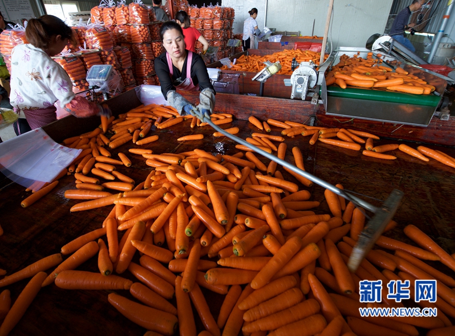 •      福建省湄洲灣北岸瓊山村村民在清洗、包裝胡蘿卜。新華社記者姜克紅 攝