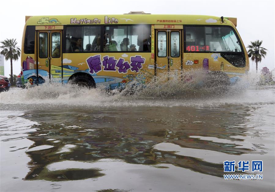5月7日,車(chē)輛行駛在廈門(mén)市一積水路段。新華社發(fā)(曾德猛 攝) -