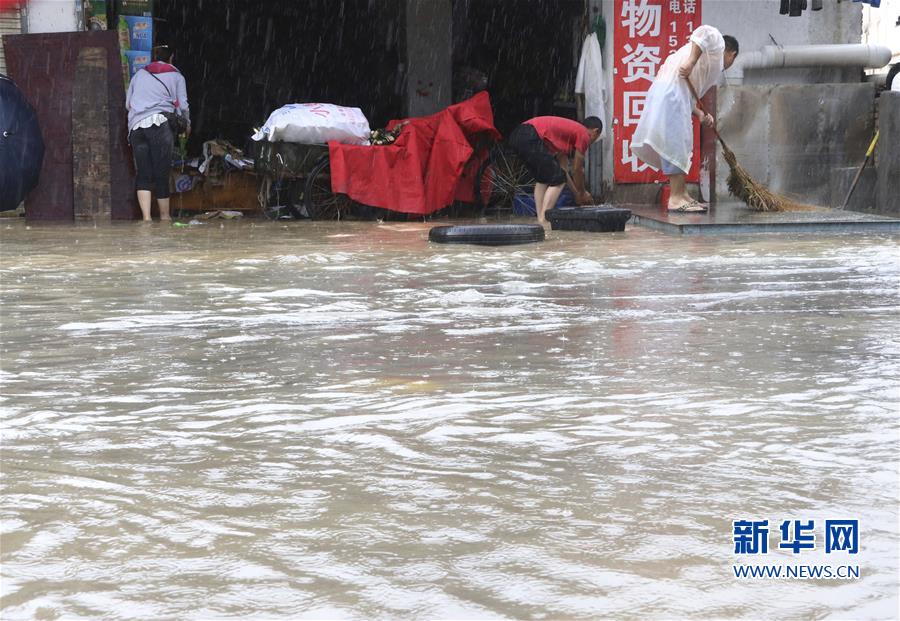 5月7日,在廈門(mén)市思明區(qū),人們排除家中積水。新華社發(fā)(曾德猛 攝) -