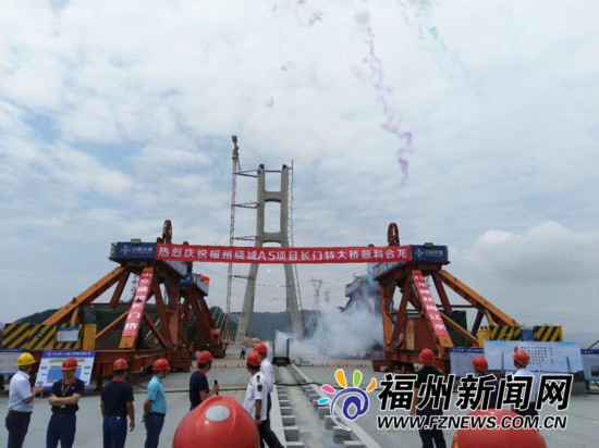原標題:福州長門特大橋順利合龍 屬國內第一跨徑的塔梁墩固結體系斜拉橋