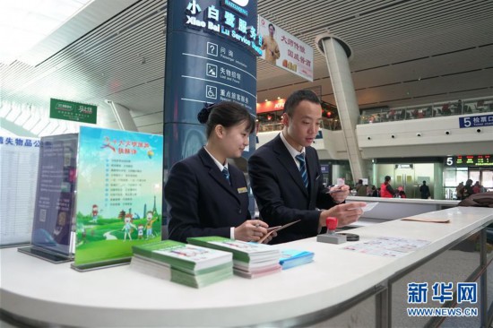 2月12日,廈門火車站小白鷺?lè)⻊?wù)臺(tái)工作人員許丹(左)和吳寶欣在核對(duì)填寫的信封信息,準(zhǔn)備寄送證件。 廈門火車站小白鷺?lè)⻊?wù)臺(tái)創(chuàng)建于2004年,主要提供旅客咨詢、重點(diǎn)旅客幫扶、遺失物品查找、廣播尋人等服務(wù)。自實(shí)行火車票實(shí)名制以來(lái),小白鷺?lè)⻊?wù)臺(tái)已為乘客寄送各種遺失證件3000余張。 新華社記者 林善傳 攝