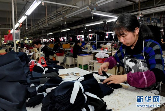 2月21日,莆田市一家服飾股份有限公司工人在生產服裝。 新華社記者 張國俊 攝