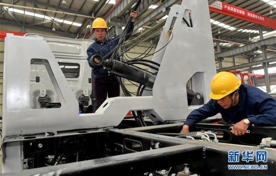 2月21日,莆田市一家機械有限公司工人在生產多功能抽吸車。 新華社記者 張國俊 攝