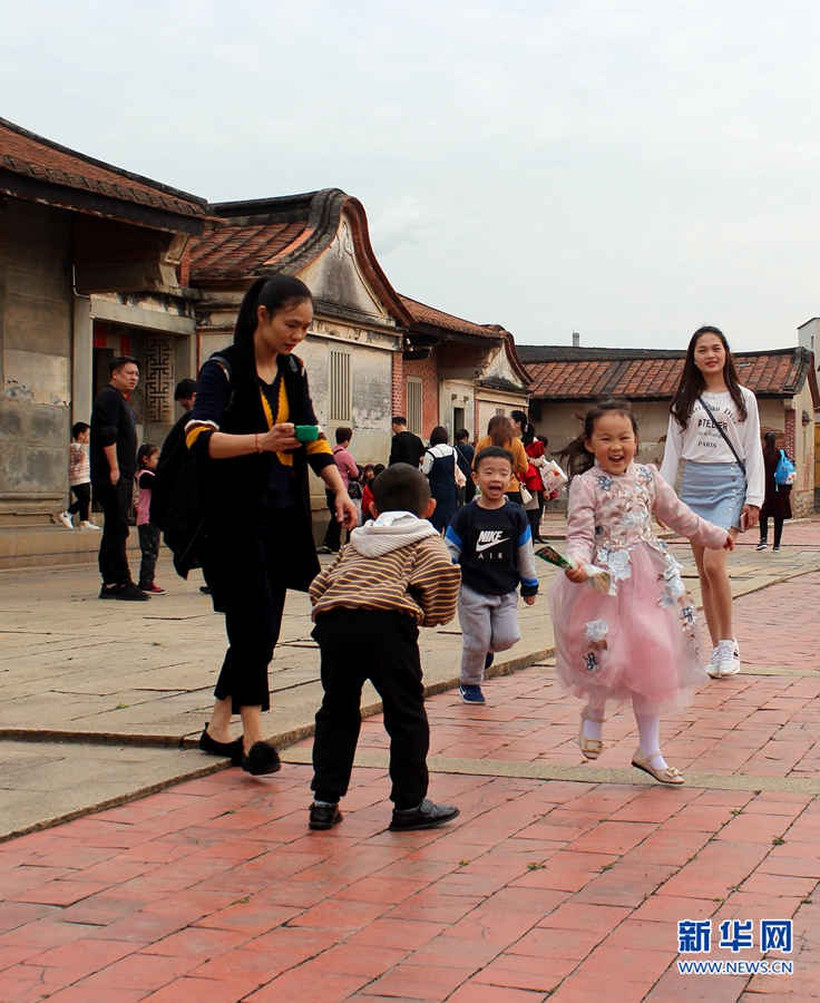 陰雨多日的福建閩南地區迎來了久違的太陽,3月16日,孩子們在林氏義莊前嬉戲。新華網 劉默涵 攝
