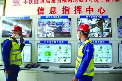 ▲ 起自閩侯荊溪鎮(zhèn)的福州地鐵5號線正在加快施工。圖為工作人員通過指揮中心進(jìn)行施工調(diào)度。林鑫 攝
