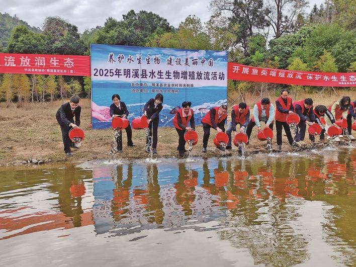 日前,明溪縣在夏坊鄉(xiāng)李沂村水口庫區(qū)段舉行水生生物增殖放流儀式。同時,明溪縣還分別在夏坊鄉(xiāng)夏坊溪流域夏坊村段、蓋洋鎮(zhèn)蓋洋溪流域蓋洋村段、楓溪鄉(xiāng)茶新水庫區(qū)段開展增殖放流活動。此次放流鰱魚、鳙魚、團(tuán)頭魴等魚類,共計88.87萬尾。(曾德林 賴美麗 攝影報道)