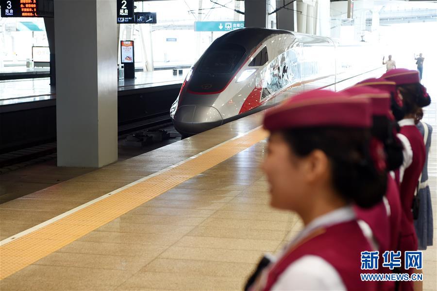 6月26日,“復興號”G123次列車駛出北京南站。 當日,中國標準動車組“復興號”在京滬高鐵兩端的北京南站和上海虹橋站雙向首發,分別擔當G123次和G124次高速列車。“復興號”是由中國鐵路總公司牽頭組織研制、具有完全自主知識產權、達到世界先進水平的中國標準動車組。 新華社記者邢廣利攝