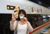 6月26日,在北京南站,一位乘坐“復興號”G123次列車的乘客在車外與列車合影。 當日,中國標準動車組“復興號”在京滬高鐵兩端的北京南站和上海虹橋站雙向首發,分別擔當G123次和G124次高速列車。“復興號”是由中國鐵路總公司牽頭組織研制、具有完全自主知識產權、達到世界先進水平的中國標準動車組。 新華社記者鞠煥宗攝 -