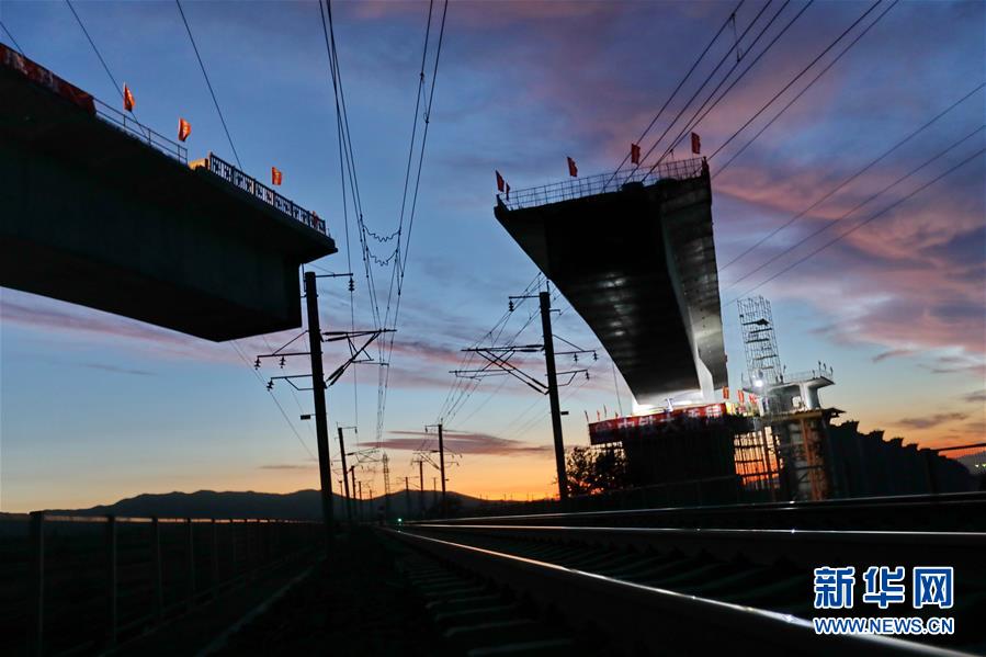 河北省懷來縣境內的新建京張高鐵跨大秦鐵路線土木特大橋連續梁在轉體中(9月17日攝)。今年開跑的“復興號”在京滬高鐵實現350公里時速運營,再次創造了領先世界的中國速度。目前,中國鐵路在勘察設計、工程建造、高速動車組、列車控制、牽引供電、運營管理、安全保障等領域已經取得一系列自主創新成果,中國鐵路總體技術水平已邁入世界先進行列,部分技術處于世界領先水平。作為中國“新四大發明”之一,高鐵不僅安全、便利、快捷地服務著中國旅客,同時也驚艷著世界。新華社記者 楊世堯 攝 -