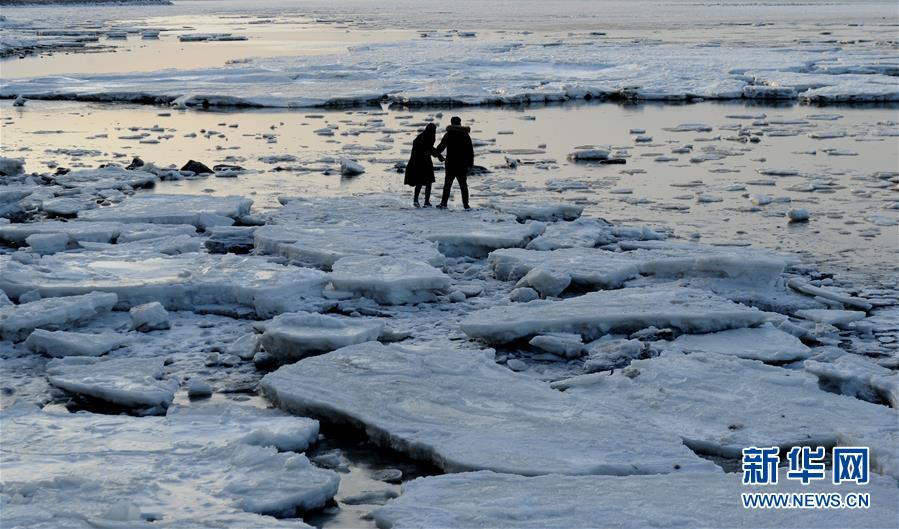 •   1月6日,游客在渤海大連夏家河子海域的海冰上游玩。受持續降溫影響,渤海大連北部海域海冰范圍擴大,在北風和潮汐的作用下,大量海冰涌上岸邊,形成奇特的極地冰原景觀。 新華社發(呂文正 攝)