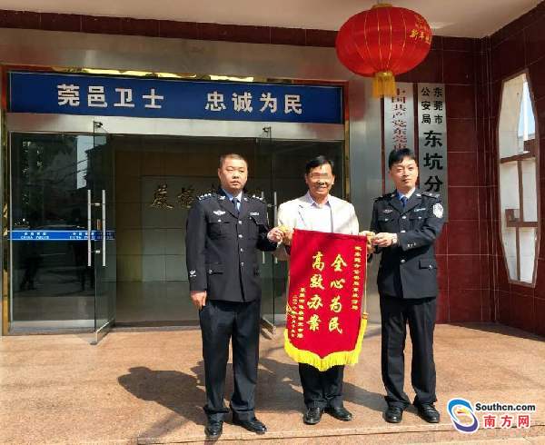 價值約185萬元的金錢龜、石金錢龜失而復得,事主盧先生甚為感概。他專門制作了錦旗,與東莞市龜業研究會有關負責人前來東坑公安分局道謝。盧先生緊緊握住辦案民警的手,顯得很激動。