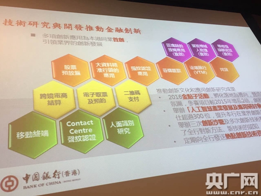 鄭松巖當日舉辦“金融科技及創新應用介紹會”。他表示,區塊鏈是引領全球金融創新的關鍵技術,將區塊鏈應用至銀行按揭業務的估價流程,能減少人工輸入及紙文檔儲存、加強資料驗證、建立與估價公司的行業標準和不可纂改的共用帳本,同時能優化流程提高效率,縮減兩天的工作時間,很大程度上提升銀行營運效率。他介紹,將有共4家銀行及5家估價公司在今年第二季內參與上述區塊鏈網路。