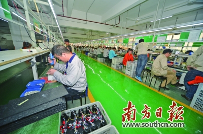 豐順縣湯坑鎮電聲企業生產線。何森垚 攝