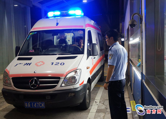 皇崗邊檢民警及時為載有患病香港老人的急救車引導至“生命健康通道”辦理出境手續(xù)。黃俊生攝