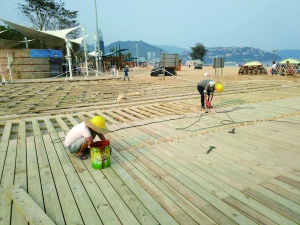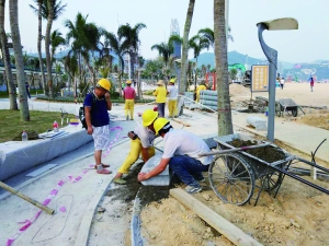 昨日,記者來到鹽田區大梅沙海濱公園,公園處處都是施工景象,工人們在鋪設路面、安裝新的出入閘口,新的廁所、沖沙池等便民設施也在加緊施工當中。