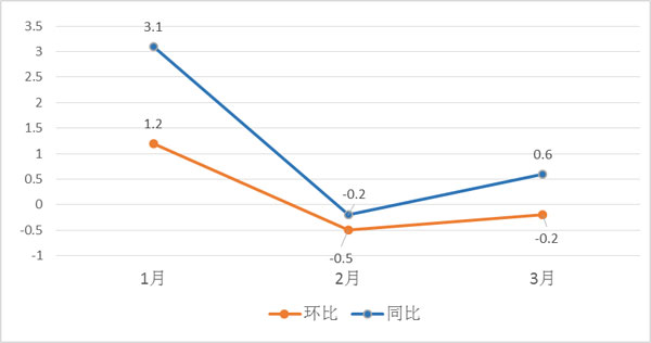 圖1 2017年第1季度中山CPI環(huán)比、同比指數(shù) 單位:%