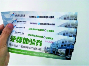 算上往返,你需要兩張免費體驗券——從莞去深的是綠色券,從深返莞的是藍色券。怎么領券?使用你的學生證,到松山湖城市候機樓就能免費領取。