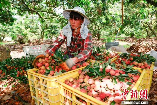 中新網(wǎng)茂名6月1日電 全球荔枝最大產(chǎn)地廣東茂名荔枝“妃子笑”品種喜獲歷史性大豐收。記者1日從茂名市最大荔枝出口商茂名豐澤園農(nóng)產(chǎn)品有限公司了解到,“妃子笑”目前已經(jīng)在全國(guó)銷售,第一批一噸左右的“妃子笑”將在三天內(nèi)發(fā)往德國(guó)。