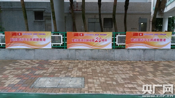 央廣網香港7月3日消息(記者周偉琪)國家主席習近平等領導人藉香港回歸祖國20周年及新一屆特區政府就職之際來港慶賀和視察,新界各界慶委會在新界各區懸掛了600多條歡迎習近平主席訪港視察及慶祝香港回歸祖國20周年的橫額,廣泛傳播回歸的喜悅。