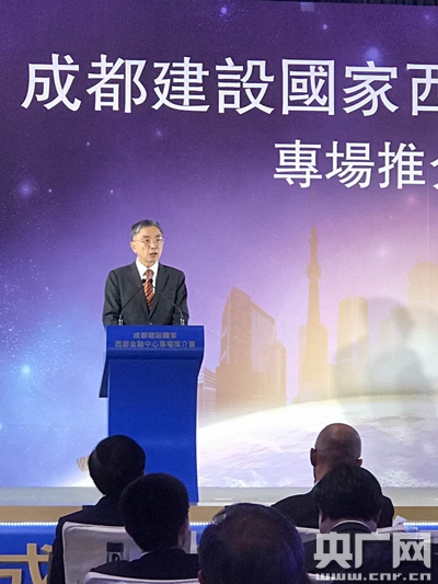 四川省委常委、成都市委書記范銳平向香港政商及金融界人士介紹成都建設國家西部金融中心有關情況。