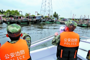 汕頭邊防支隊井都邊防派出所官兵向漁民通報臺風最新動態(tài)。