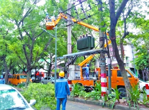 昨天上午,潮州市相關部門對路樹進行修剪加固。