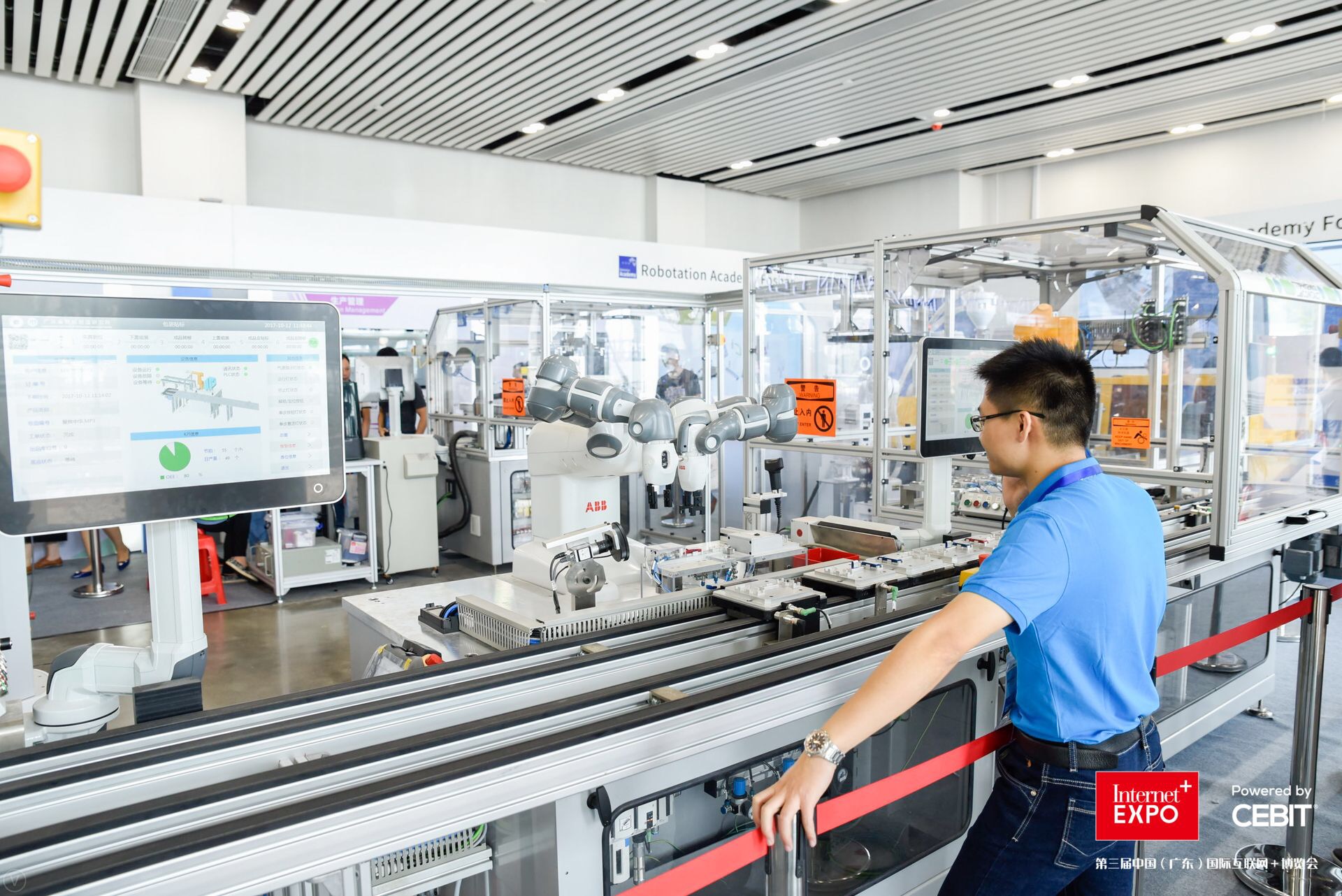 央廣網佛山10月12日消息(記者 彭小毛、周羽、王雪薇) 第三屆中國(廣東)國際“互聯網+”博覽會今日(10月12日)在佛山開幕,共為期四天。作為本屆大會的重頭戲,佛山機器人學院正式啟動,同時啟動了首條中德合作工業4.0示范生產線。