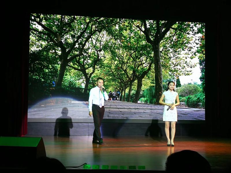 據(jù)悉,這次詩會是該校首次打破傳統(tǒng)形式,采取全場一個一個主題三個篇章串成一根主線,用配音和視頻展現(xiàn)詩歌意蘊,由唯美舞蹈作為序曲,拉開朗誦河源總體美和五縣區(qū)的美再綜述河源的大美,結(jié)尾以“多彩萬綠湖”歌曲結(jié)束整場詩會,中間沒有出現(xiàn)主持串詞,把現(xiàn)代詩歌融入古典詩歌等新元素展開朗誦表演的新形式,這也是繼“詩歌走進校園”名家進校朗誦專場后的又一創(chuàng)新。鄭爾君老師希望,通過詩會,能傳承祖國家鄉(xiāng)的優(yōu)秀文化,呼吁大家保護生態(tài)環(huán)境,愛護萬綠河源。