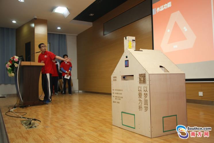 南方網訊(全媒體記者/孫穎 朱洪波)師生可以真誠傾訴、交流的真心電話亭, 引導盲人行走的智能“導盲犬”機器,幫助老人拿東西和解悶等的智能家用助手,擁有時鐘、擁抱等多功能的“溫暖你小熊”……