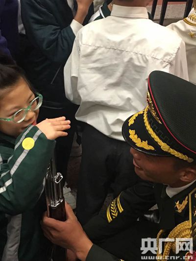 現(xiàn)場的互動可以看出,學生們對解放軍的一切都感到好奇,從服飾到日常生活,從身高到體重。其中不少學生跑到軍人面前比身高,幷和他們握手、擁抱。