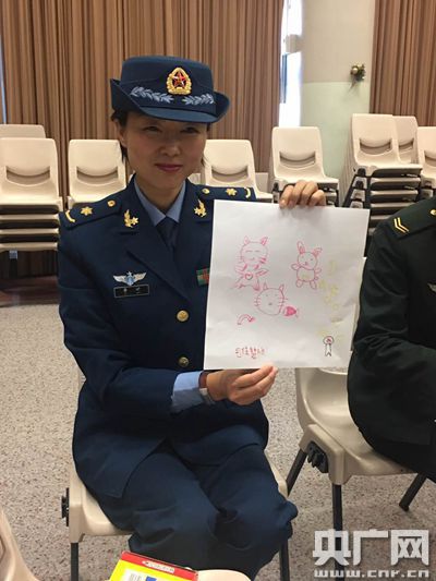 部隊女戰(zhàn)士展示學生們送給她的禮物