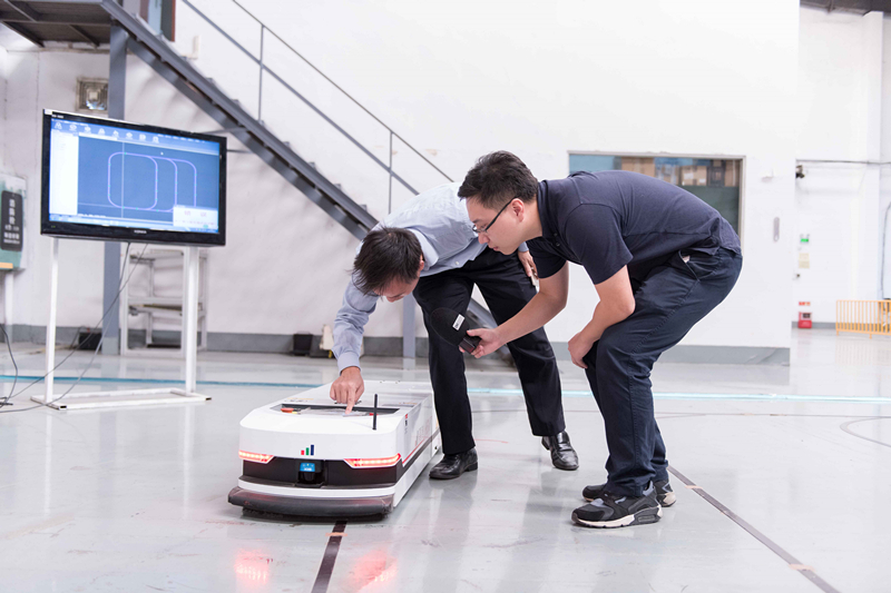 早上8點,剛結束休假的陳洪波趕到公司。今天要來好幾撥客戶。在機器人生產車間,頭頂接收器、腳踩四個輪、身披黃外套的“大黃蜂”正自如地挪動。它是一個搬運機器人,能拖載2.5噸重的東西,可遠程操控,可室外運行,不用軌道,更能適應復雜的工作環境。