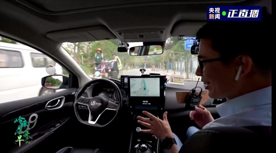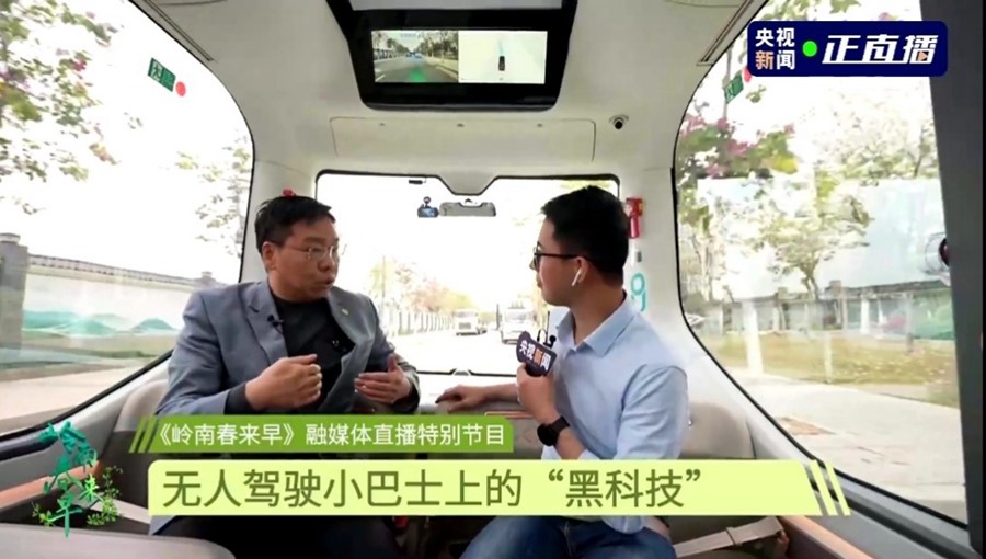 直播中,總臺(tái)記者走進(jìn)同時(shí)落地?zé)o人駕駛汽車(chē)和無(wú)人駕駛巴士的廣州生物島,使用手機(jī)軟件叫車(chē),一路分享新鮮體驗(yàn)感受,并與自動(dòng)駕駛領(lǐng)軍企業(yè)文遠(yuǎn)知行首席運(yùn)營(yíng)官?gòu)埩痴劅o(wú)人駕駛技術(shù)里的“黑科技”。